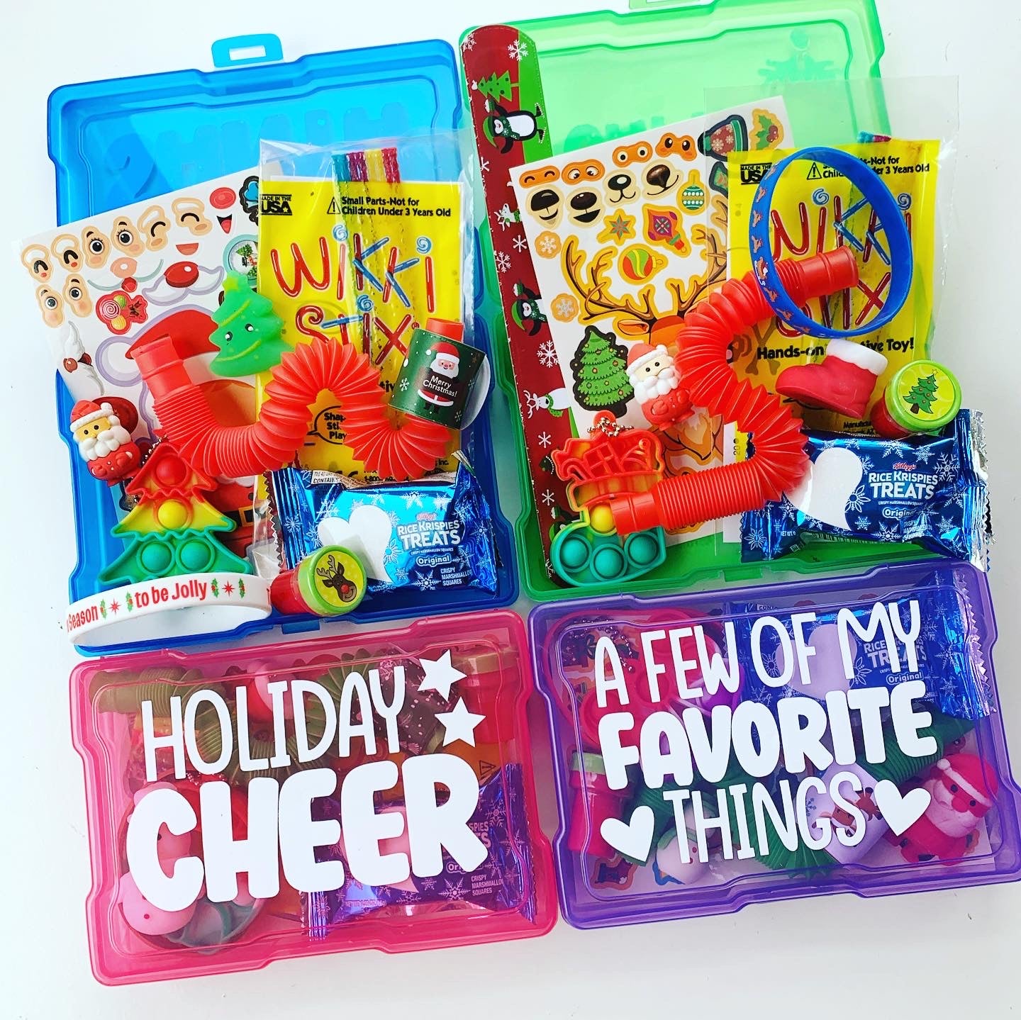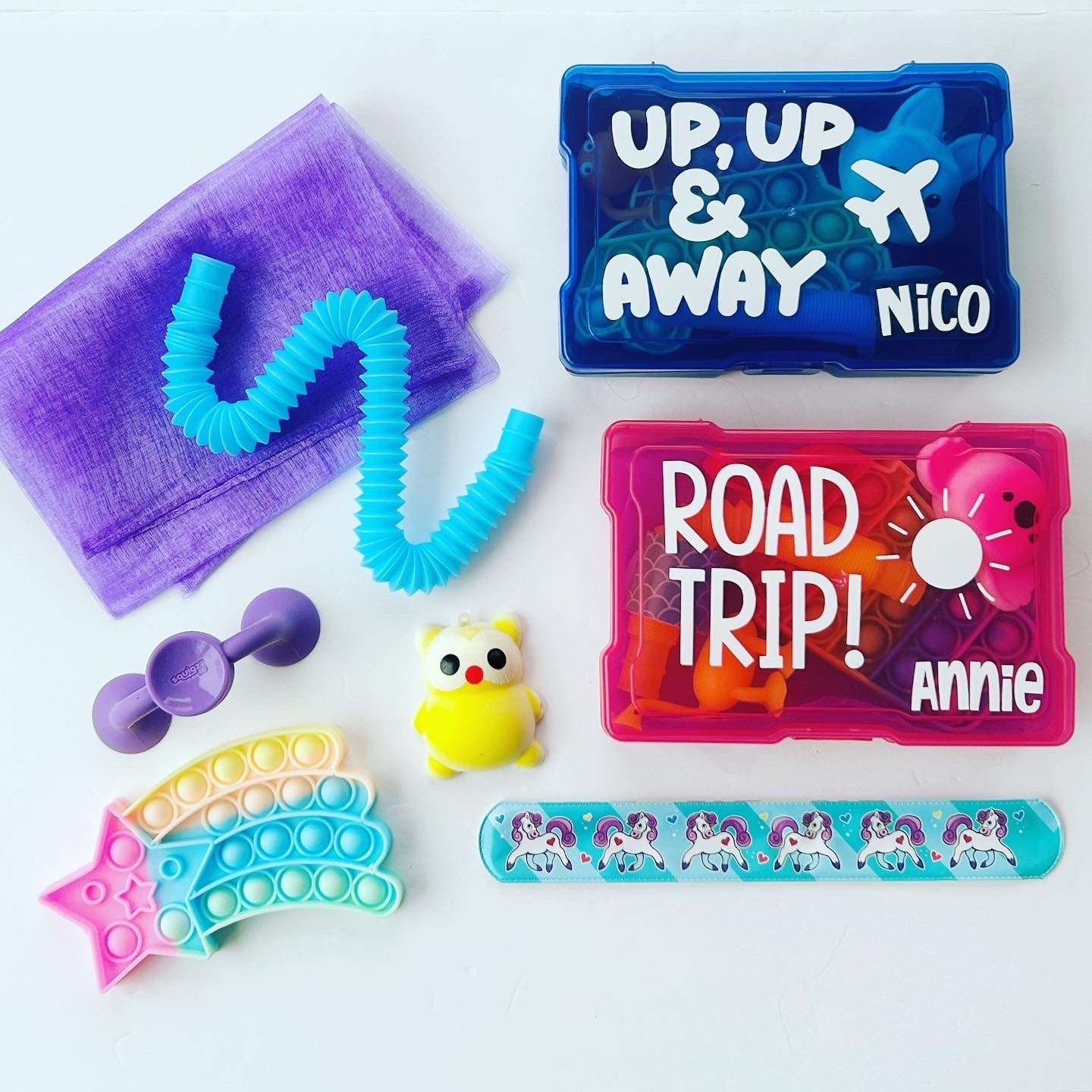 Great for stocking stuffers or to put underneath the Christmas tree for a fun surprise all kiddos will love. Also so much fun for holiday kids tables to keep kids entertained. These personalized mini busy boxes are the best gift! Great for taking on the go, on vacation and long car trips, to restaurants or to play with at home all winter long.