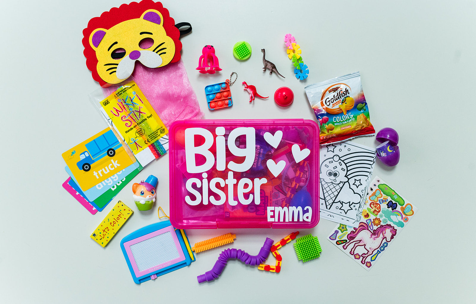 This personalized activity-filled busy box will make the new big brother or sister feel special, appreciated and loved during this special time in their life. Plus, it's filled with fun activities to keep the older sibling entertained while mom and dad tend to the new baby.