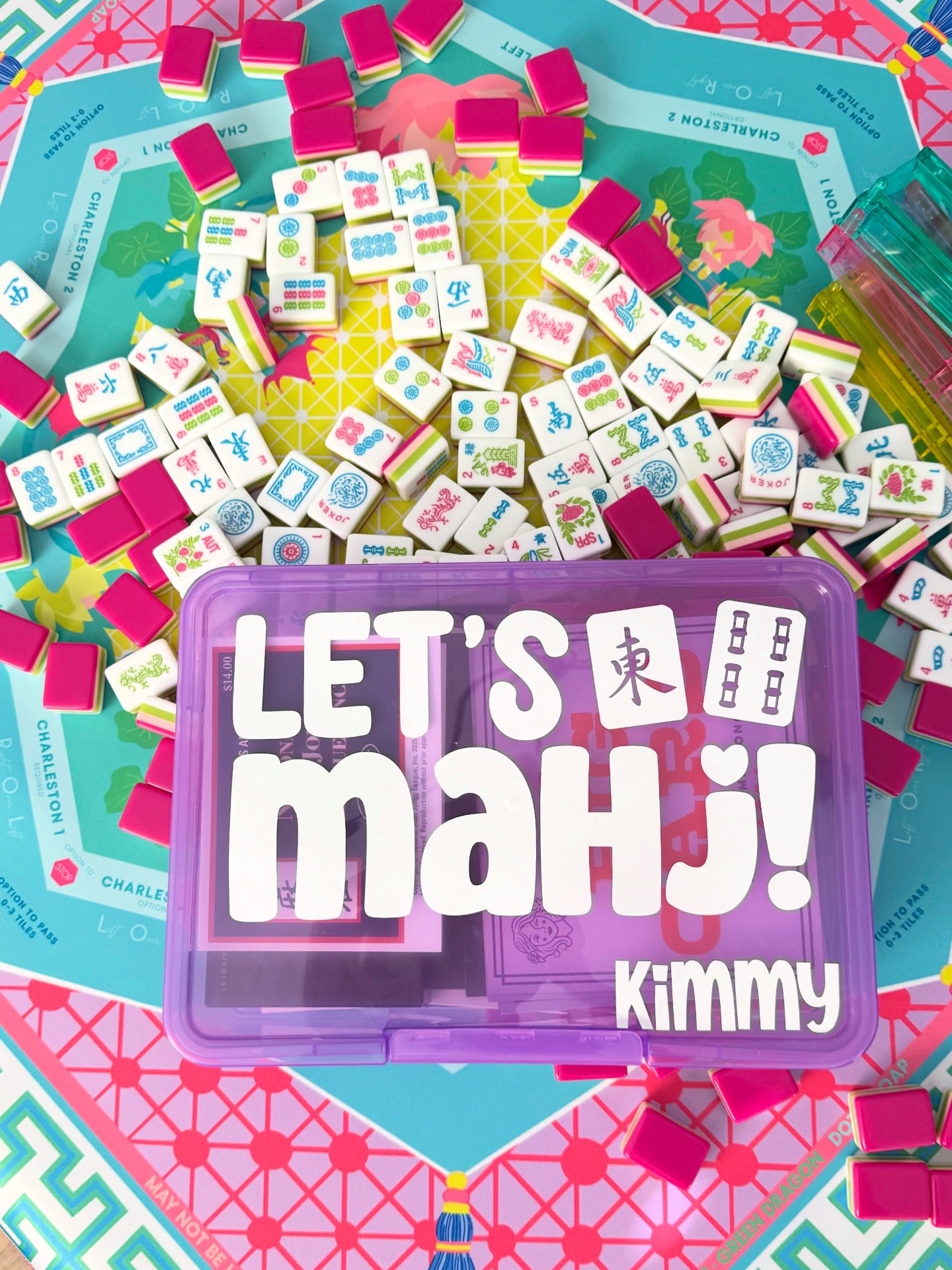 Each box features a white vinyl design with your custom personalization, making it an ideal Mahjong gift for her, mahjong tournament prize, or just a fun upgrade to your own game night essentials.